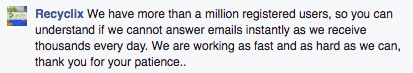Recyclix's Facebook page is swarming with victims of the ponzi pyramid questioning the company's policy and long delayed withdrawals. Some of them seem to be very angry after losing huge amounts of money.